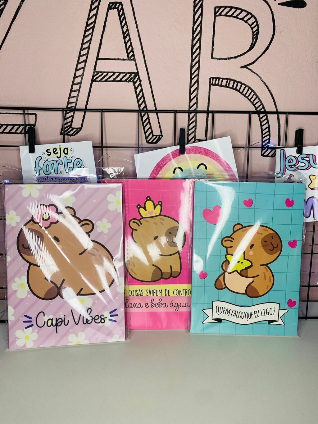 O caderno A5 Capivara é um item encantador e prático, perfeito para quem gosta de organização e estilo. Com tamanho compacto, ideal para levar na bolsa ou mochila, ele possui uma capa decorada com uma divertida ilustração de capivara, trazendo um toque de charme e personalidade ao seu material de escrita. Geralmente, conta com páginas de alta qualidade, ideais para anotações, desenhos ou estudos, tornando-se uma ótima escolha para estudantes, profissionais ou quem gosta de registrar suas ideias de forma criativa.