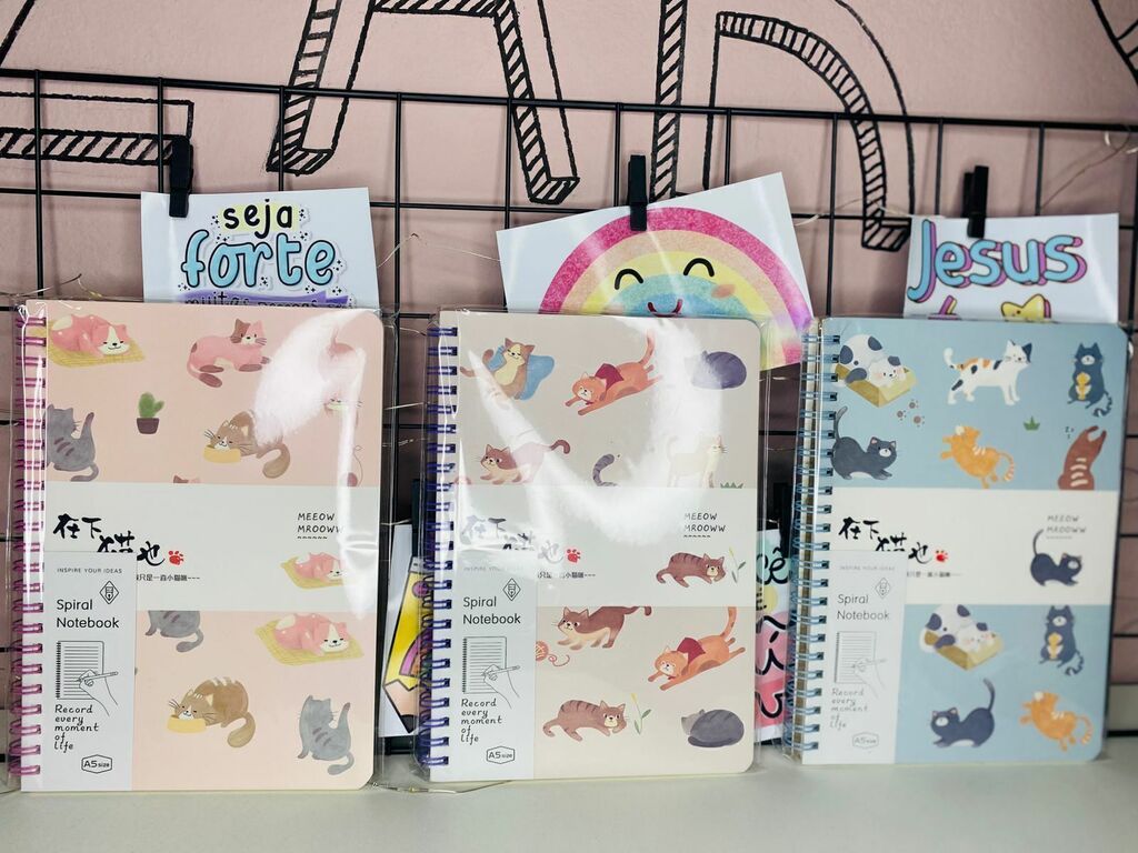 O caderno A5 de gatinho é um caderno compacto e charmoso, perfeito para quem gosta de animais fofos e de tamanho prático para levar na bolsa ou mochila. Geralmente, ele apresenta uma capa decorada com ilustrações de gatinhos adoráveis, tornando-o um item divertido e encantador. O formato A5 é ideal para anotações, listas, desenhos ou estudos, oferecendo uma combinação de praticidade e estilo. Além disso, o design com gatinho traz um toque de fofura e personalidade ao seu material de escrita.
